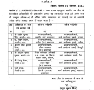बता दे, खरगोन, उज्जैन, बैतूल, सिवनी, सीधी, अशोक नगर, सतना, बालाघाट, दमोह, शाजापुर पन्ना, भिंड, मुरैना, रीवा, रायसेन और भोपाल जिले के वन मंडल अधिकारी (DFO) बदले गए हैं।