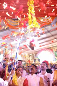 CM ने कहा, ” आज इंदौर में जन्माष्टमी महोत्सव में शामिल होकर ‘कण-कण में कृष्ण’ की अनुभूति हुई। हाथ में बांसुरी, माथे पर मोर मुकट और अधरों पर मुस्कान लिए नन्हें बाल गोपालों पर पुष्प वर्षा कर, उनके साथ मटकी फोड़ लीला का सहभागी बन एवं उनके हाथों से माखन मिश्री पाकर अद्भुत आनंद प्राप्त हुआ। जिसके जीवन में नहीं कोई तृष्णा, वही है कृष्णा… प्रदेश के मेरे सभी भाई-बहनों का जीवन कृष्ण की इन्हीं शिक्षाओं से प्रेरित हो; हर घर कृष्ण और हर मां यशोदा हो, हर पर्व आनंदमयी हो; यही कामना करता हूं। ”